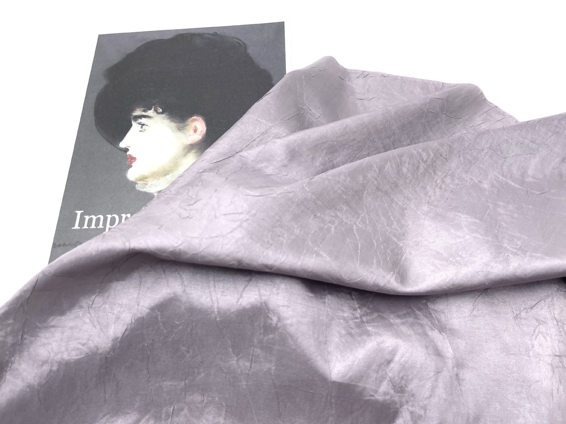 インスピレーションシリーズ紫灰色超薄単層透けないしわ筋理光沢生地デザイナー生地