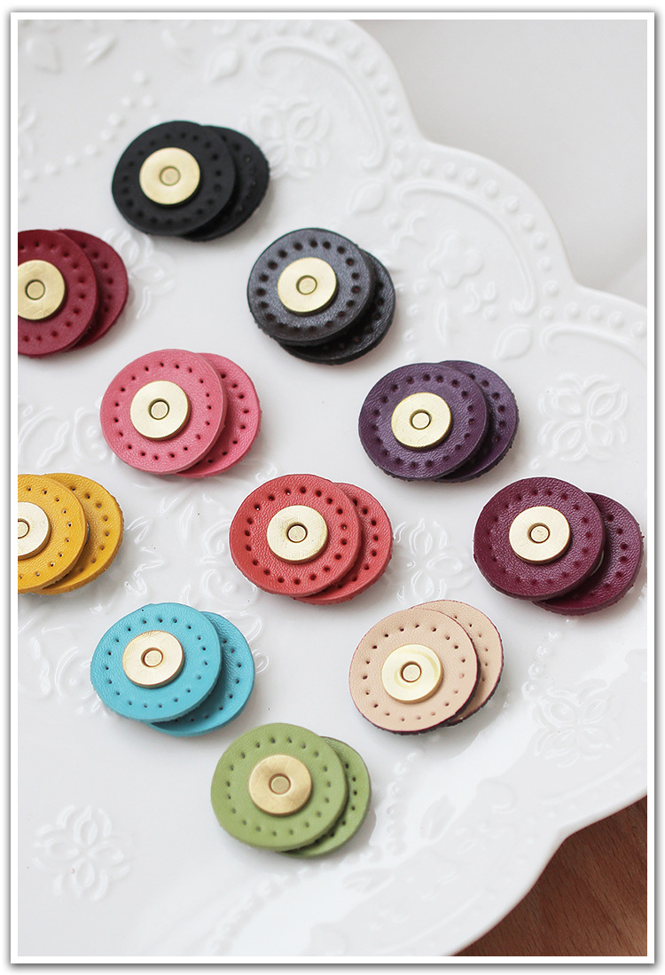 新しい牛革の皮の部品の箱は丸い板の真皮の磁気ボタンの直径の3センチの3.5元を掛けます。
