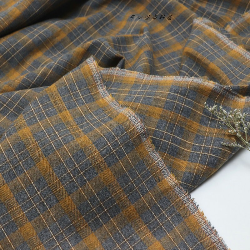 日単復古柿灰カレー格子ポリエステル綿麻生地春秋復古服装チャイナドレスズボンカーテン生地
