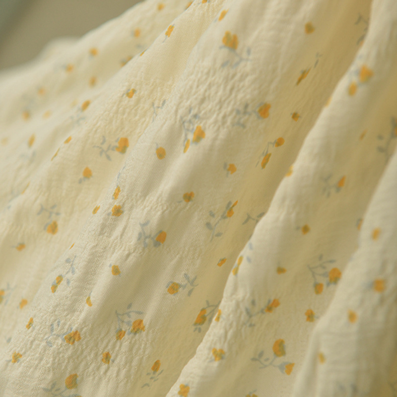 黄色の小さい花の米の白色の純粋な色の織物の格のポリエステルの繊維の上着は長いスカートのチャイナドレスの子供服のカーテンの生地に連なります。