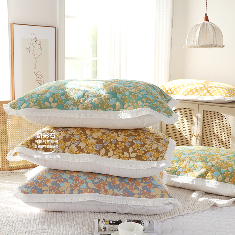 フレンチスカートの純綿のガーゼの枕のタオルのペアは新しい綿の家庭用のシングルカバーのタオルを入れて、滑り止めて枕のスカーフを脱いではいけません。
