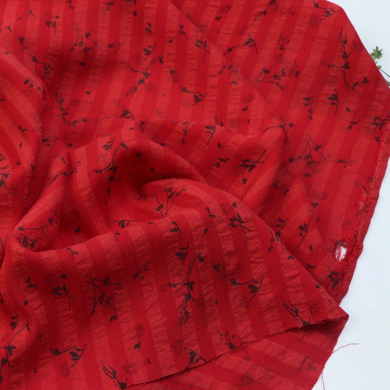 国風レトロ黄赤色花枝縞筋綿麻生地オリジナルワンピース上着シャツ手作りDIY