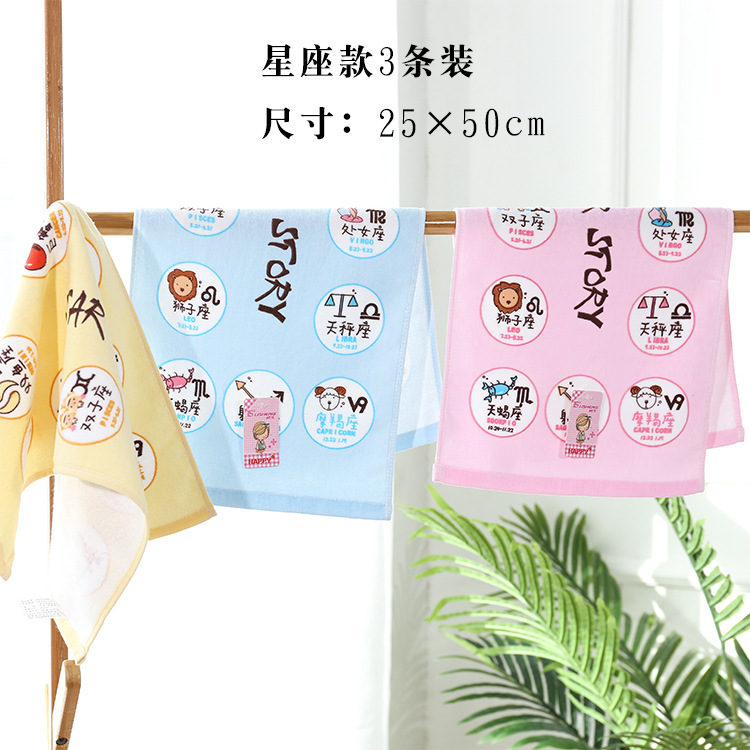 子供用の子供用タオル3枚入り綿の赤ちゃんタオルプリント長方形の超柔らかい吸水洗顔風呂