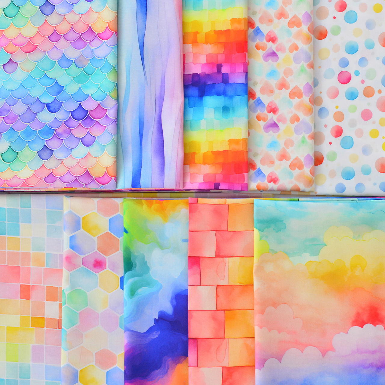 平織り綿生地カラー虹雲プリント生地手作りDIY服装ワンピース生地幻彩世界