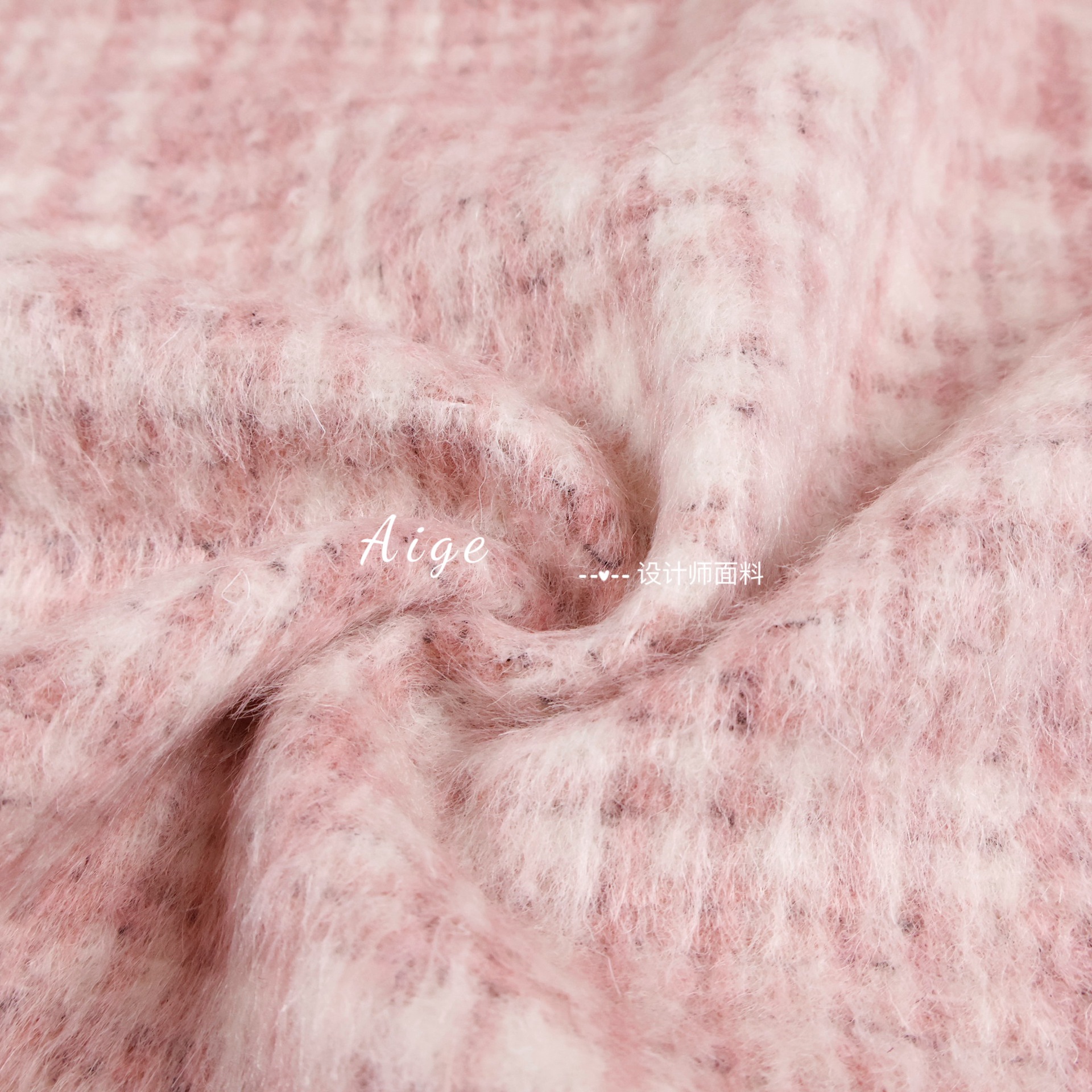 輸入限定の柔らかいモチモチのピンクの格子縞の長い毛の順毛の羊のキャメルケースのカシミヤのウールの生地の冬のコートの布地