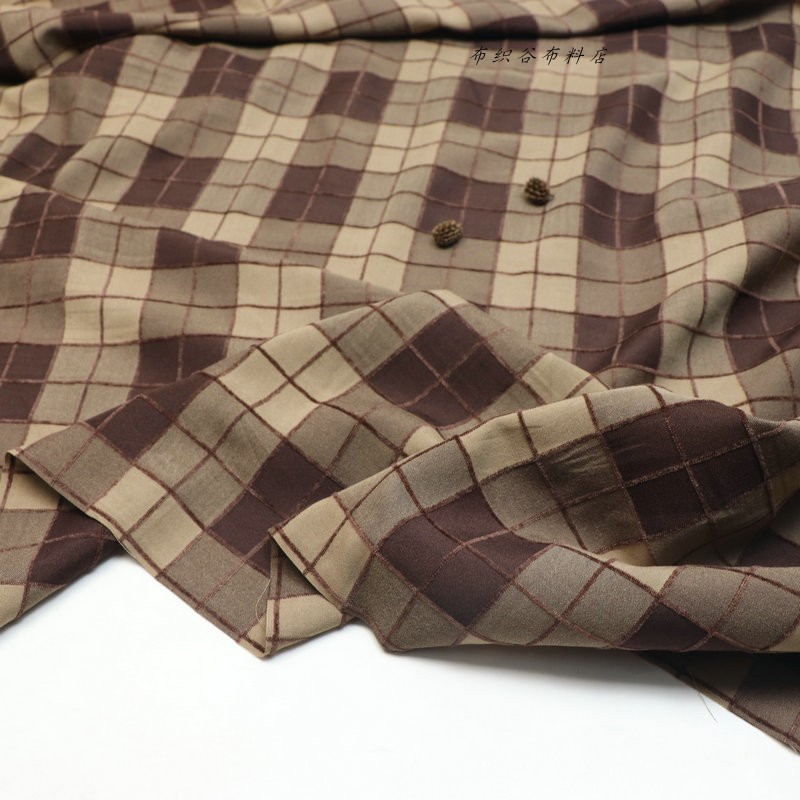 日単復古紫カレー色ジャカード格子ポリエステル綿生地森系ワンピースシャツズボン手作り服生地