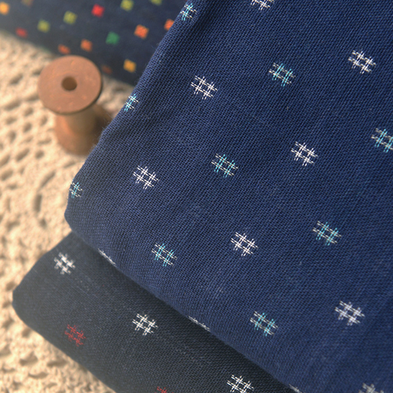 先染色織白赤青彩格井字格綿麻生地文芸シャツワンピース服装手作り生地