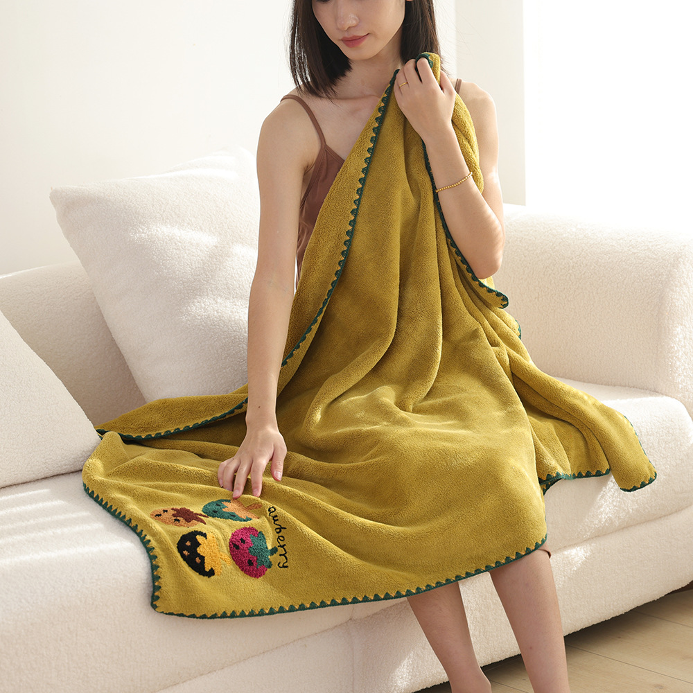 サンゴベルベットいちごバスタオル成人家庭用新製品80*150比純綿吸水速乾毛なし入浴タオル