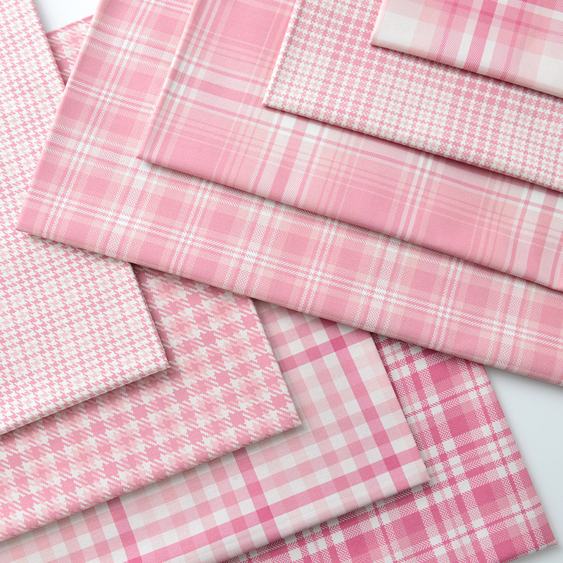 純綿生地INS格子児童小清新捺染手作りDIY服装装飾綿生地ピンク格子縞