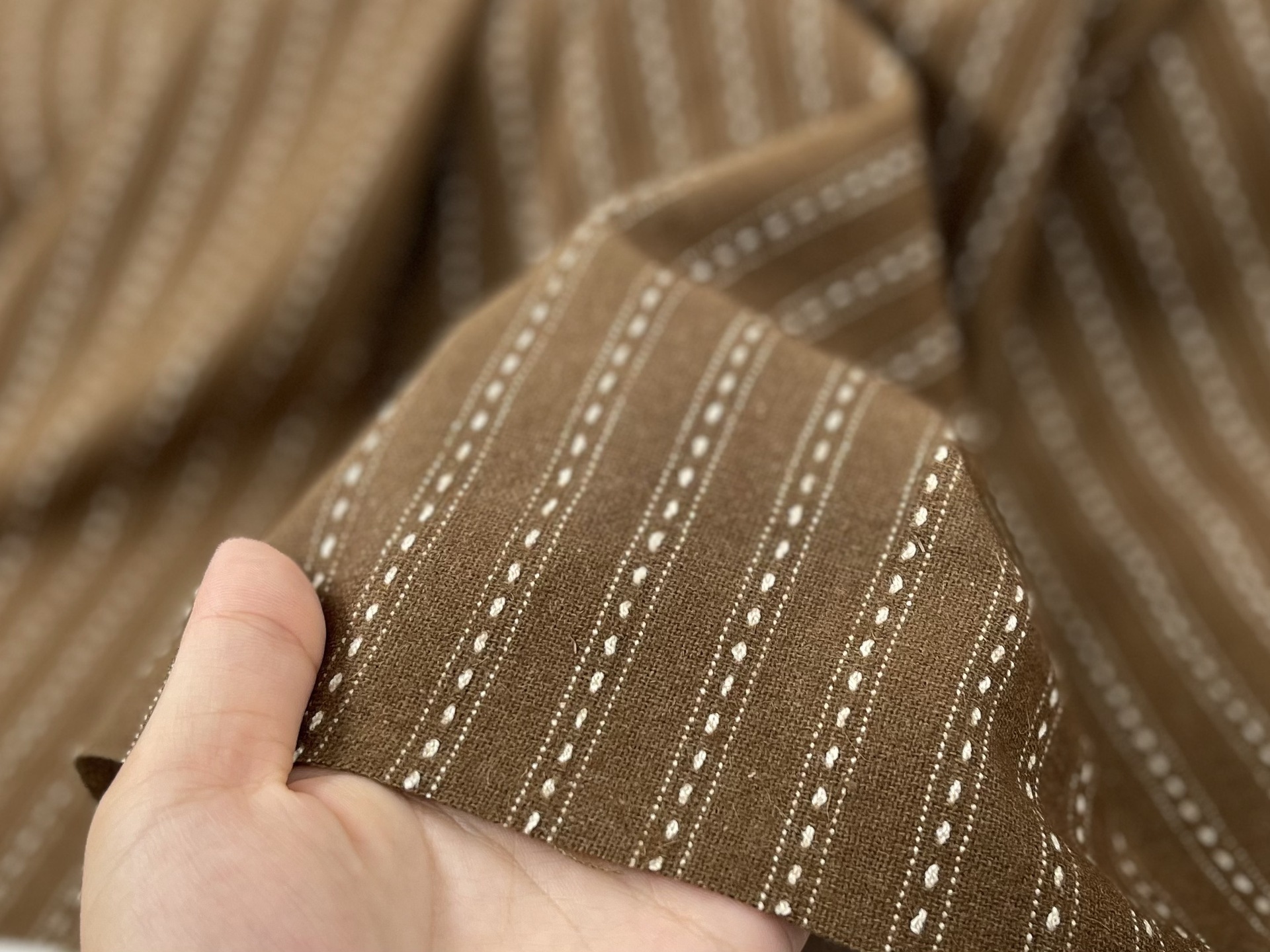 薄いタイプの繊細なカーキの茶色の縦縞のウールの生地の春秋スーツのスーツのスーツの半スカートの生地diy