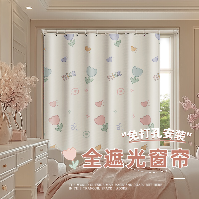 2024新型簡易穴なし取付カーテン寝室日よけシェード布の窓防音カーテンロッドセット