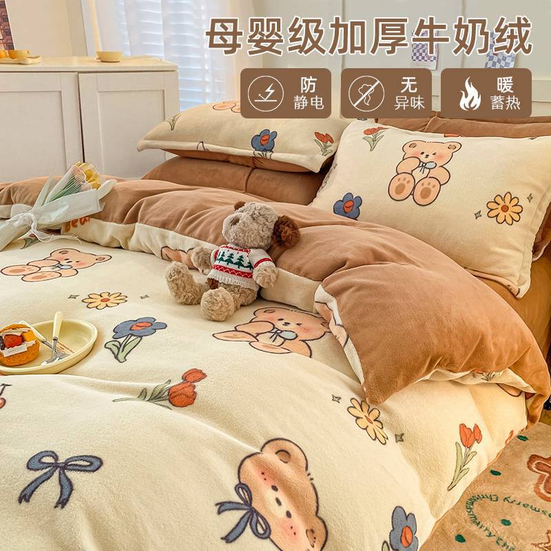 ミルクベルベットの4セットは、秋の冬の魔法のベルベットを厚くして、サンゴのベルベットシーツ寮のシングル2024の新しいGRをカバーしています