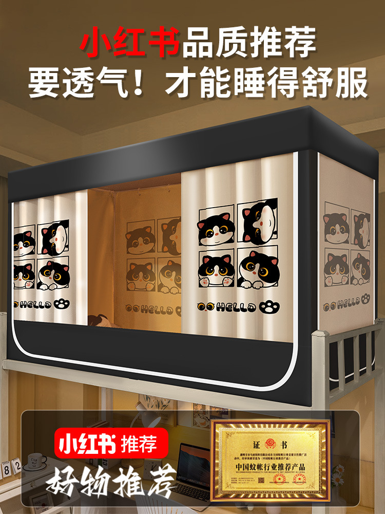 大学生寮のベッドカーテン一体式蚊帳遮光上敷上下敷2024年新2023上下子母