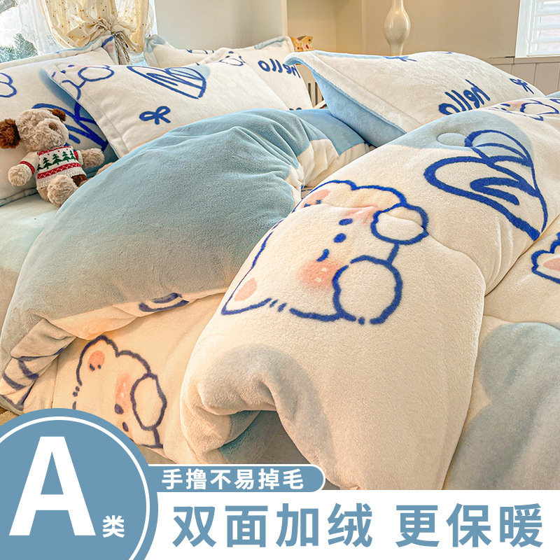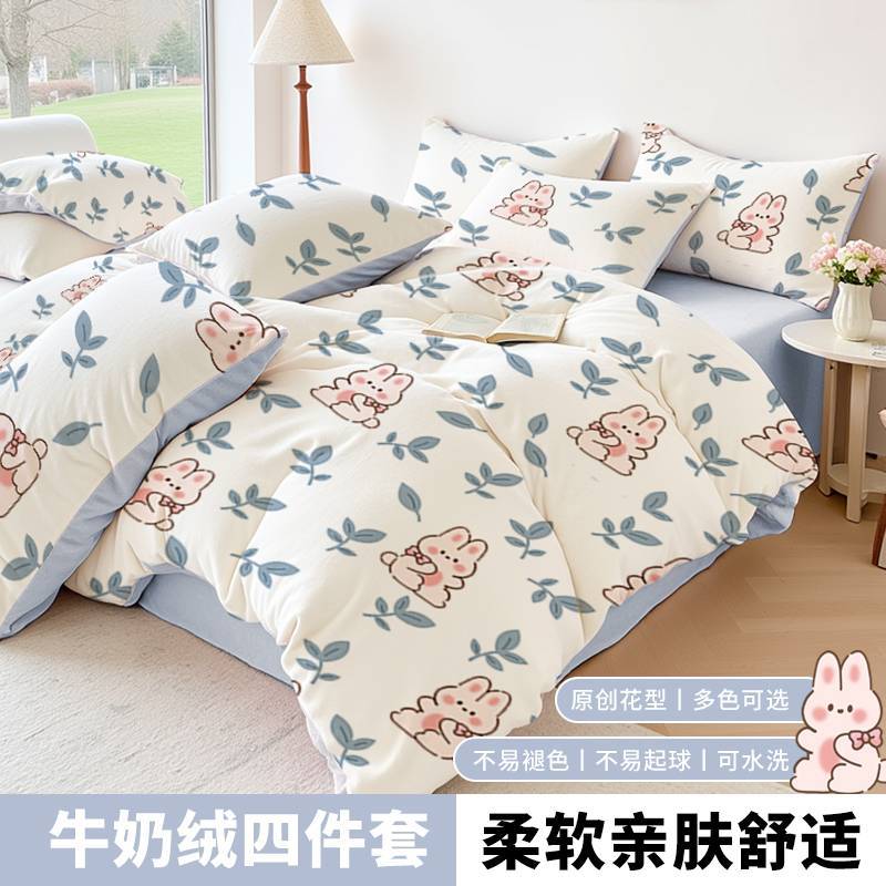 ミルクベルベット4点セットベルベット布団シーツ秋冬コーラルベルベットベッド3点セット寮2024新型GR