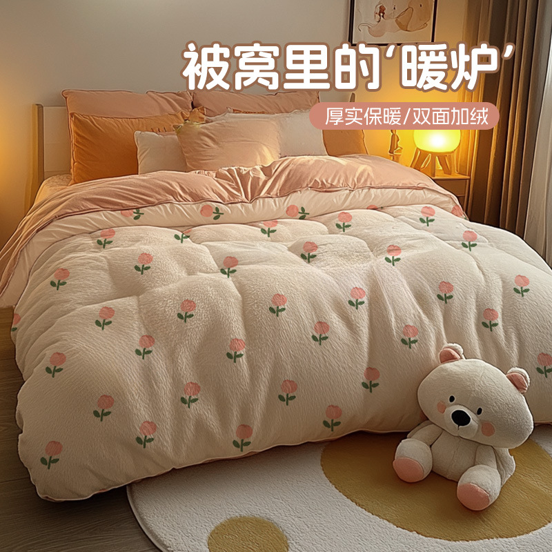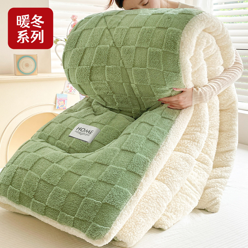 ミルクの毛の掛け布団の冬は綿の学生の寮のシングルの子羊の毛で厚くて暖かいです。