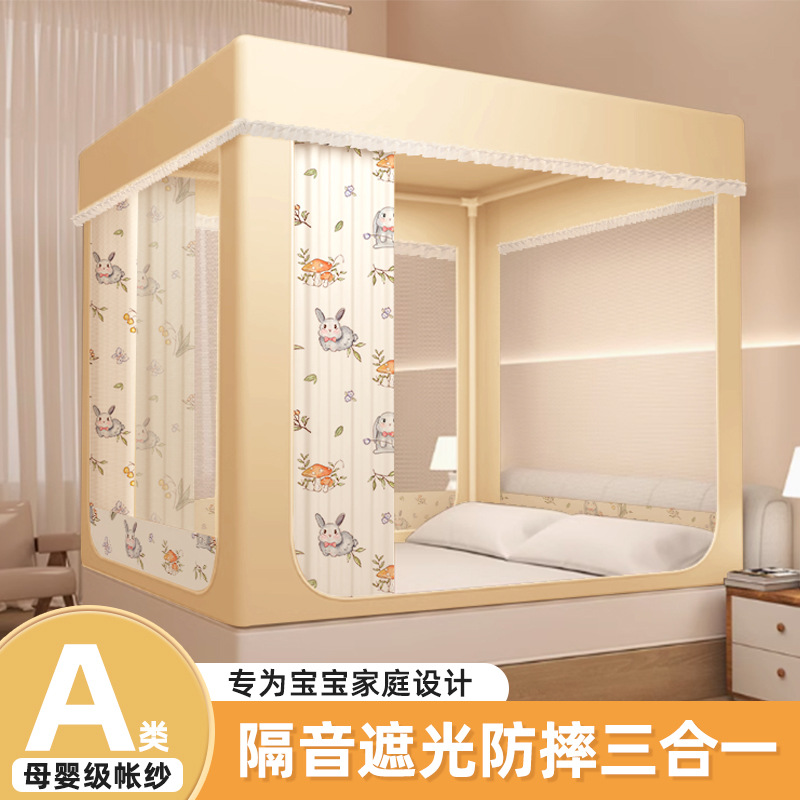 遮光蚊帳家庭用2024新型寝室児童転倒防止ベッド笠モンゴルバッグ一体式ベッドカーテン保温ベッド帳