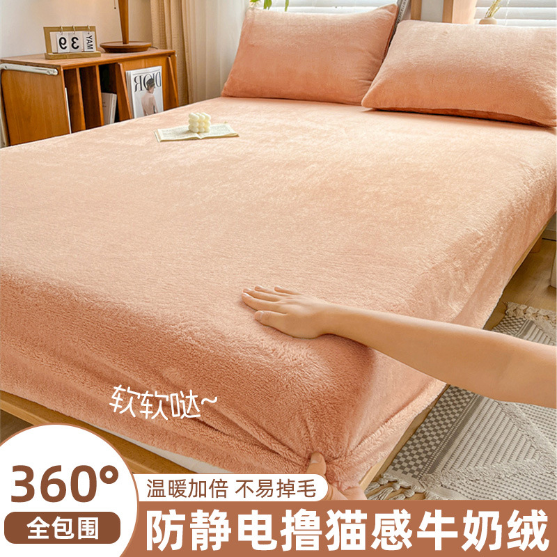 牛乳のベルベットのベッドカバーのシングルは冬にベルベットの厚いベッドカバーのサンゴのベルベットのマットレス保護カバーのシングルはシーツを全部包んだ