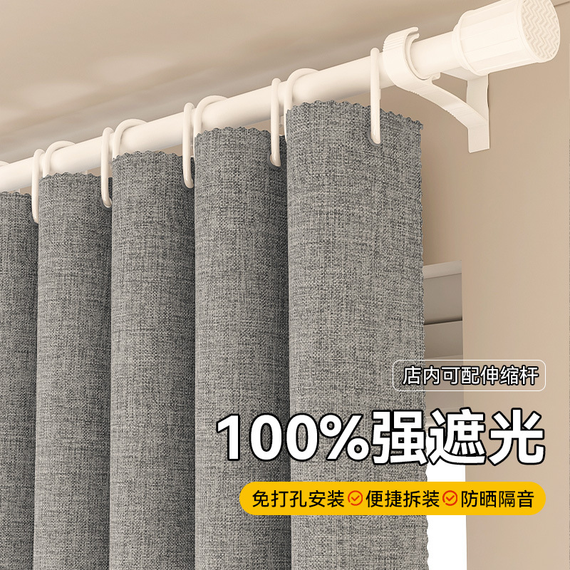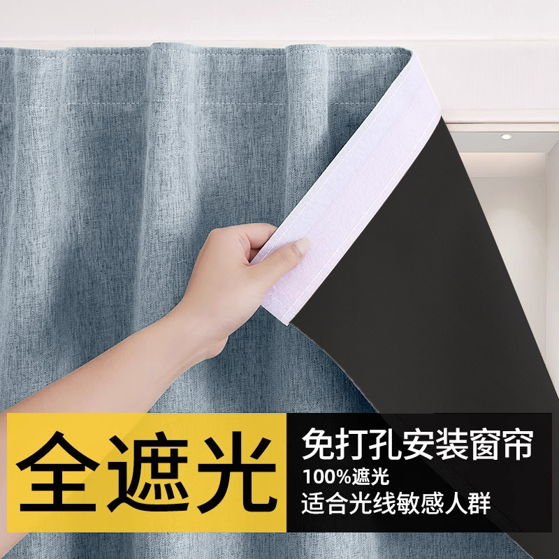 全遮光リネンカーテン2024新型穴なし設置賃貸住宅の窓マジックテープ布糸一体カーテン
