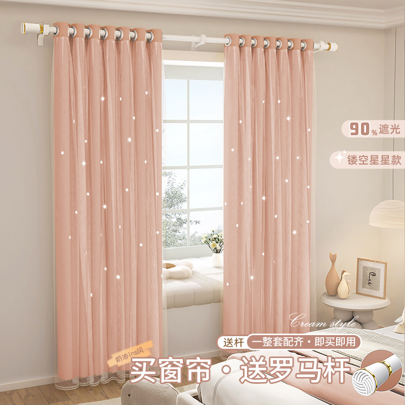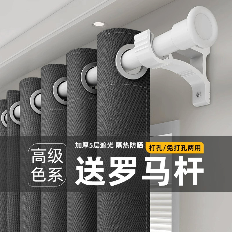 2024新型簡易穴なし取付カーテン寝室日よけシェード布の窓防音カーテンロッドセット