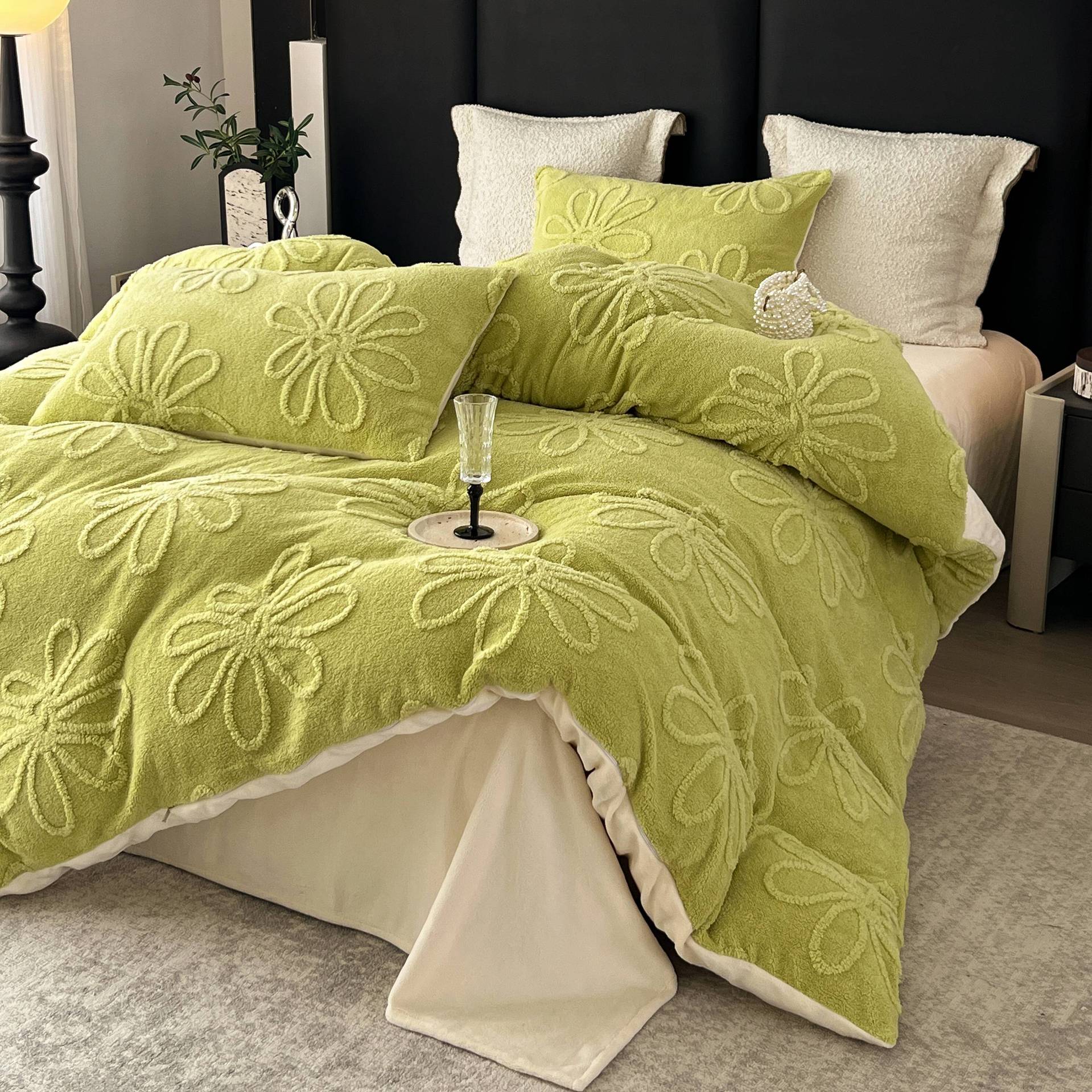 暖冬2024新型牛乳絨毛四点セット秋冬絨毛布団カバーサンゴ絨毛ベッドシーツ三点セット寮
