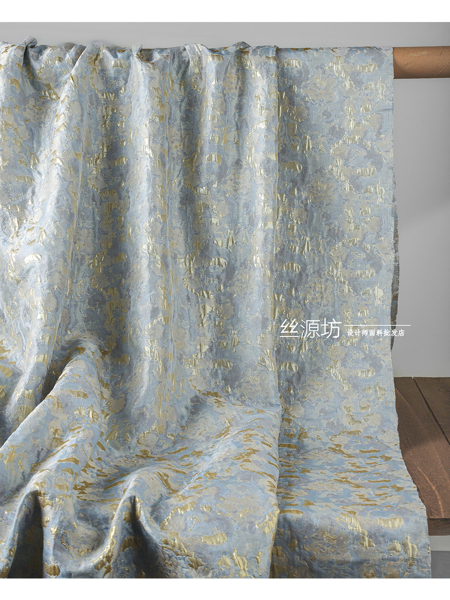浅青砕金油絵ジャカード生地立体筋理スカートワンピースデザイナー生地