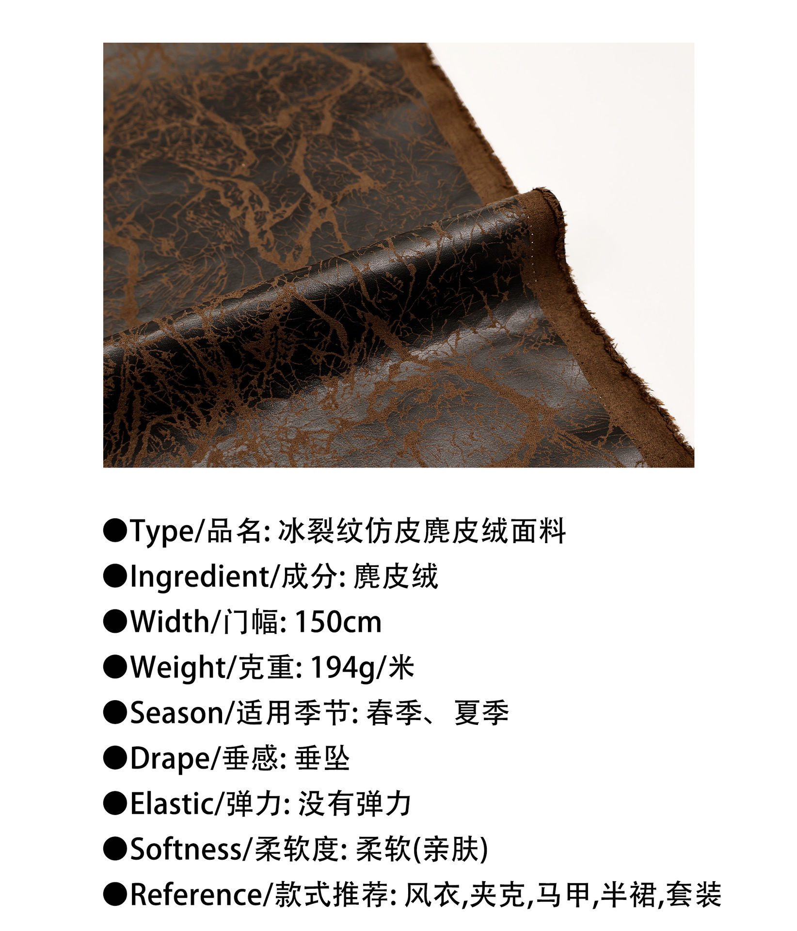 薄い肌の濃い茶色の氷のひびは皮のスエードの布のスーツのスーツのスーツのスカートのデザイナーの生地のDIYをまねます。