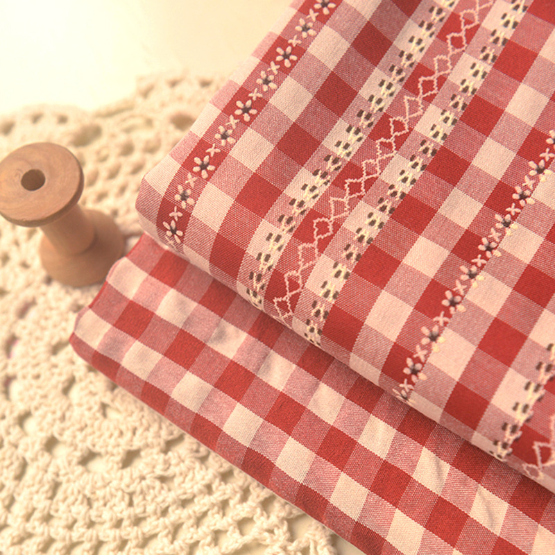 多色田園花壁小格ポリエステル綿布森系オリジナルシャツ上着服装ワンピース手作りdiy生地