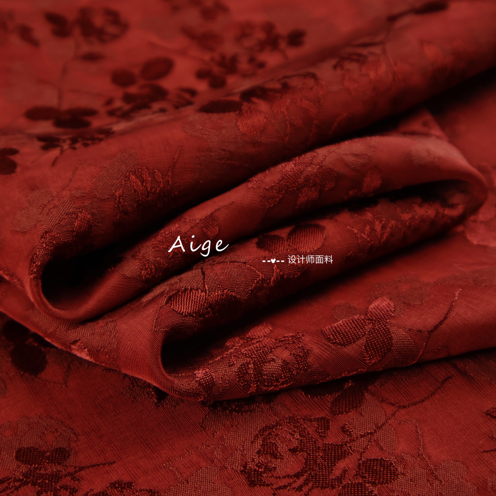 新中国式レトロ赤色暗紋花ジャカード光沢リネンサテン生地チャイナドレス漢服春夏布地