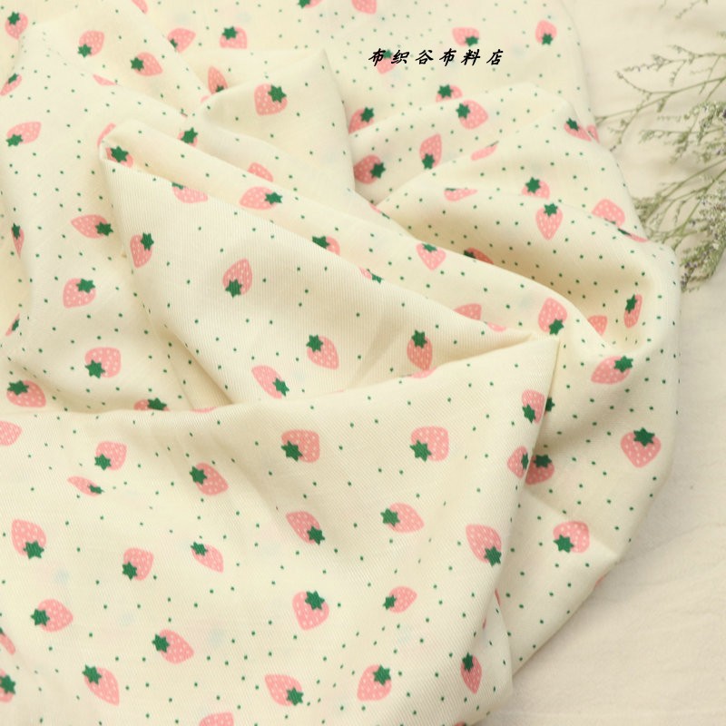 ピンクのイチゴの小さな緑の波の千糸の綿布の夏の秋のかわいいカーディガンのシャツのワンピースのロングスカートの子供服の生地