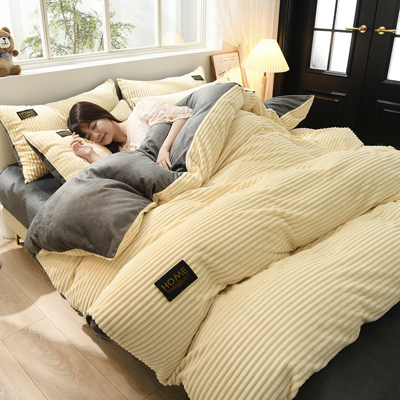 牛乳の毛の4つのセットの秋冬のカシミヤの掛け布団カバーの2024の新型の暖かい冬のサンゴのベッドのシーツの3つのセットの寮
