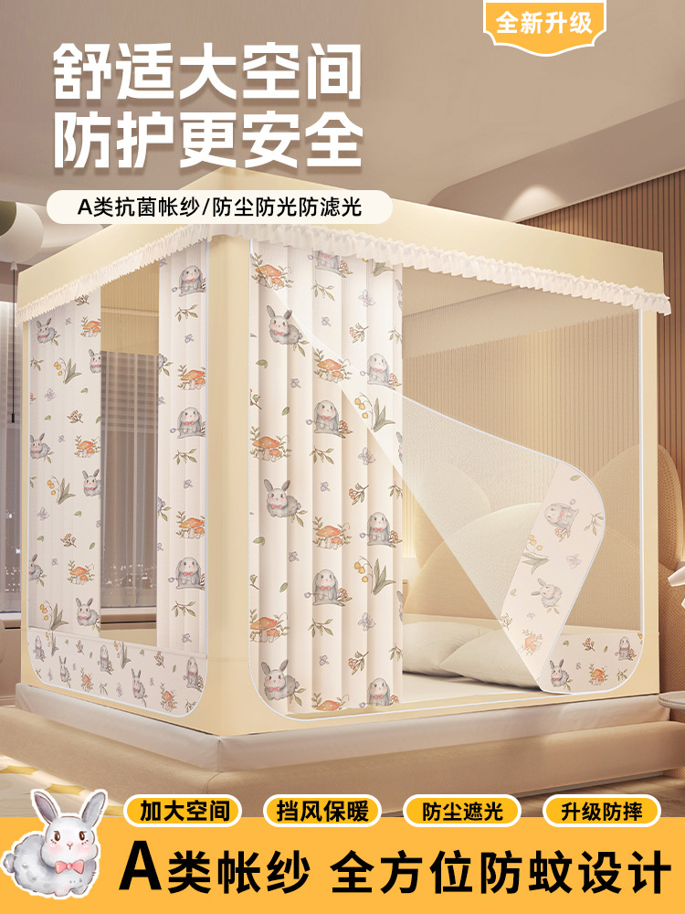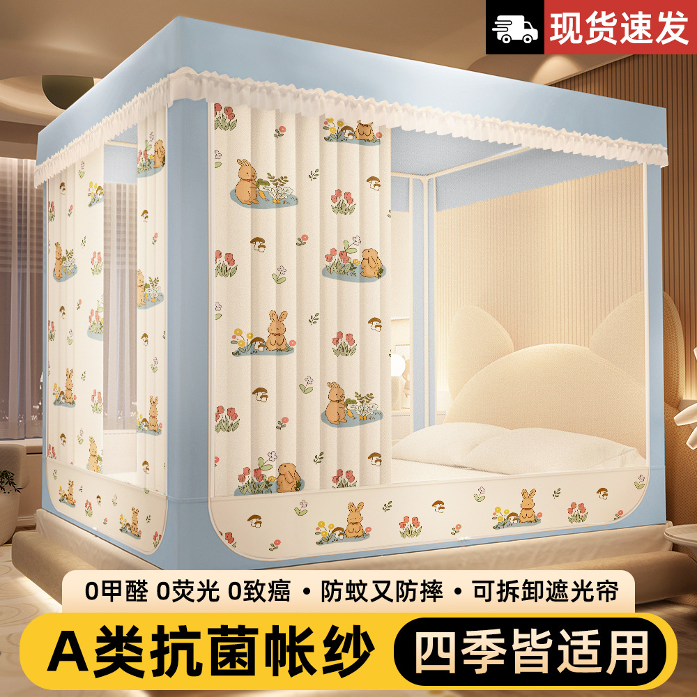 転倒防止蚊帳家庭用寝室モンゴルバッグ一体式遮光ベッドカーテン2023新型児童王女2024ベッドカーテン