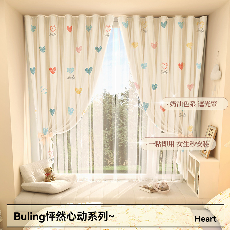 フル遮光カーテンシェード布寝室完成品ベランダ断熱日焼け止め窓簡易穴なし2024新品ll
