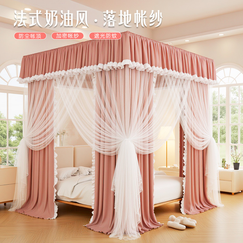 フランス式遮光ベッドカーテン蚊帳一体式冬保温家庭用寝室床置き遮光カーテン防塵ベッドカーテン