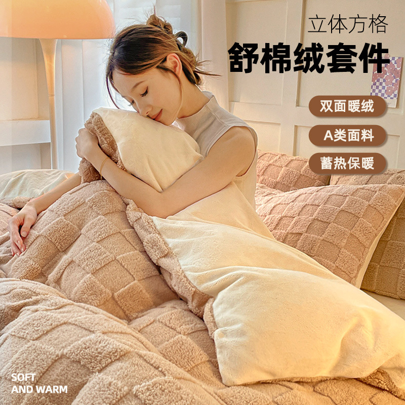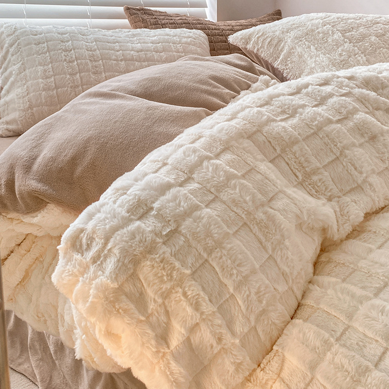 ウサギのぬいぐるみ4点セットとベルベットのミルクのベルベット秋冬はサンゴのシーツ2024の新型の厚いベッドの3点セットです