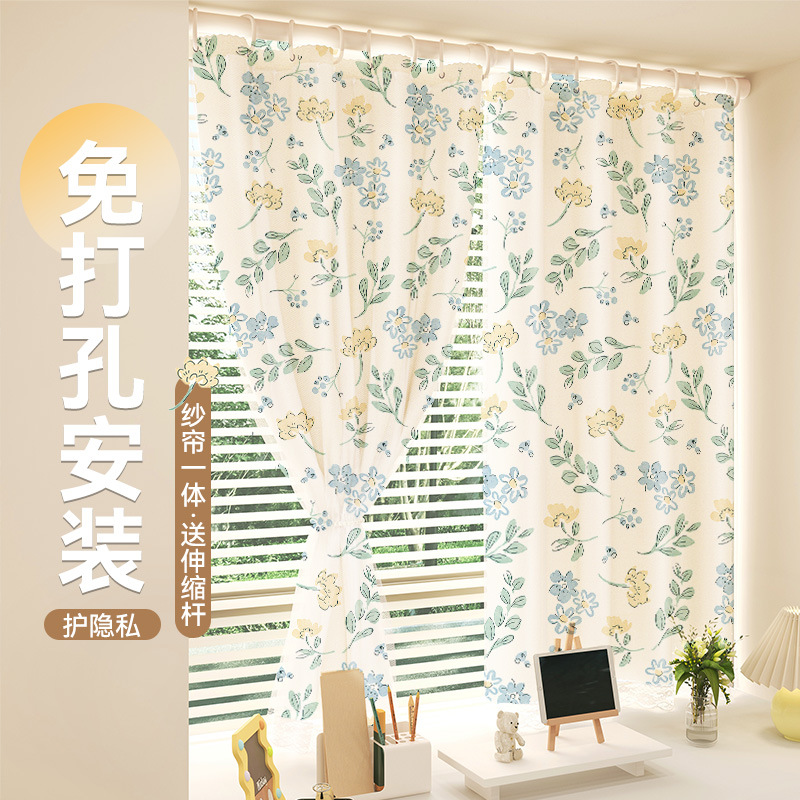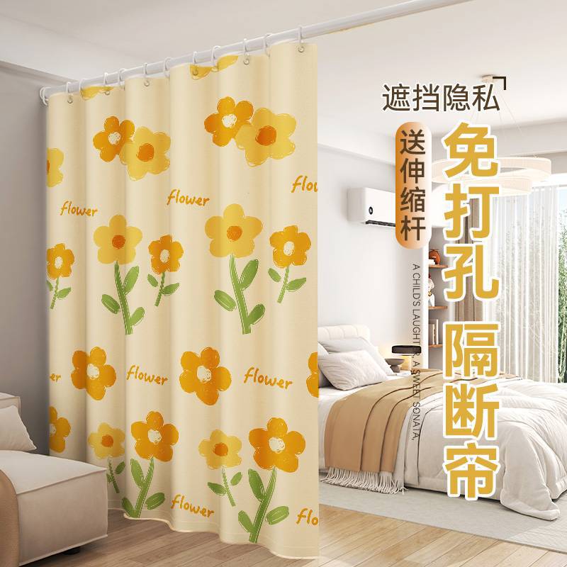 カーテン穴なし伸縮棒客間寝室ベランダ遮断カーテン遮光布冬窓フロント神器子供