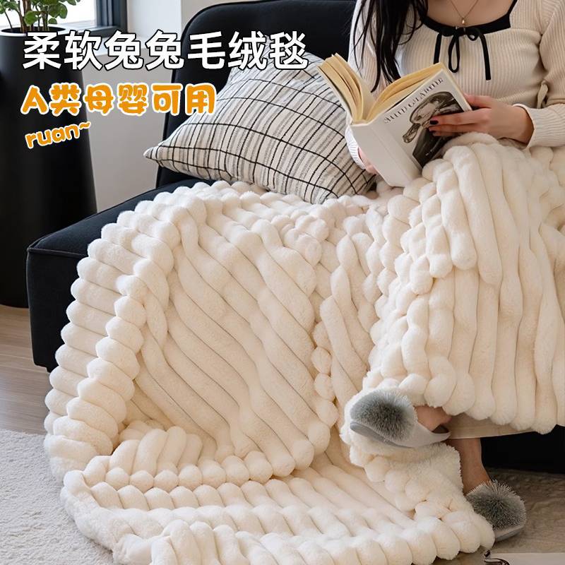 Ins兎絨毯オフィス昼寝ブランケット冬にクラスAのソファ毛布を厚くして四季に通用する毛布ベッド用gr