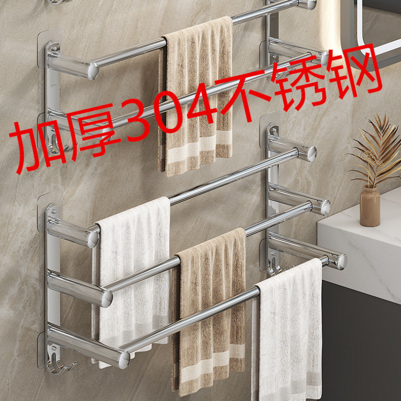 タオルラック浴室パンチフリーダブルロッドバスタオルラック浴室浴室トイレ 304 ステンレス鋼吊りタオルバー