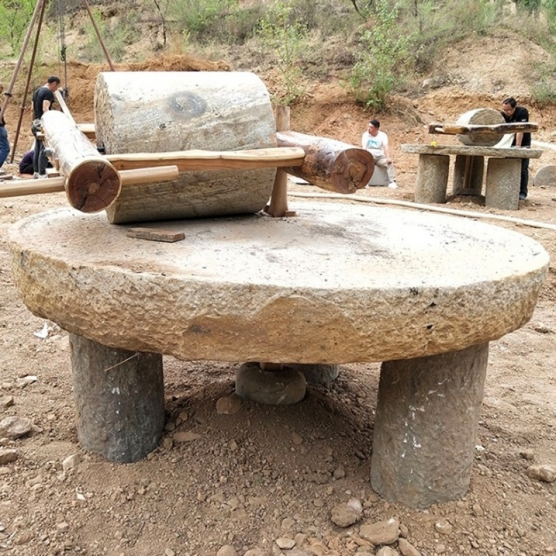 田舎の古い石臼、昔ながらの古い石臼、薬用石臼、石臼、石臼、レトロな庭のノスタルジックな農具の装飾品