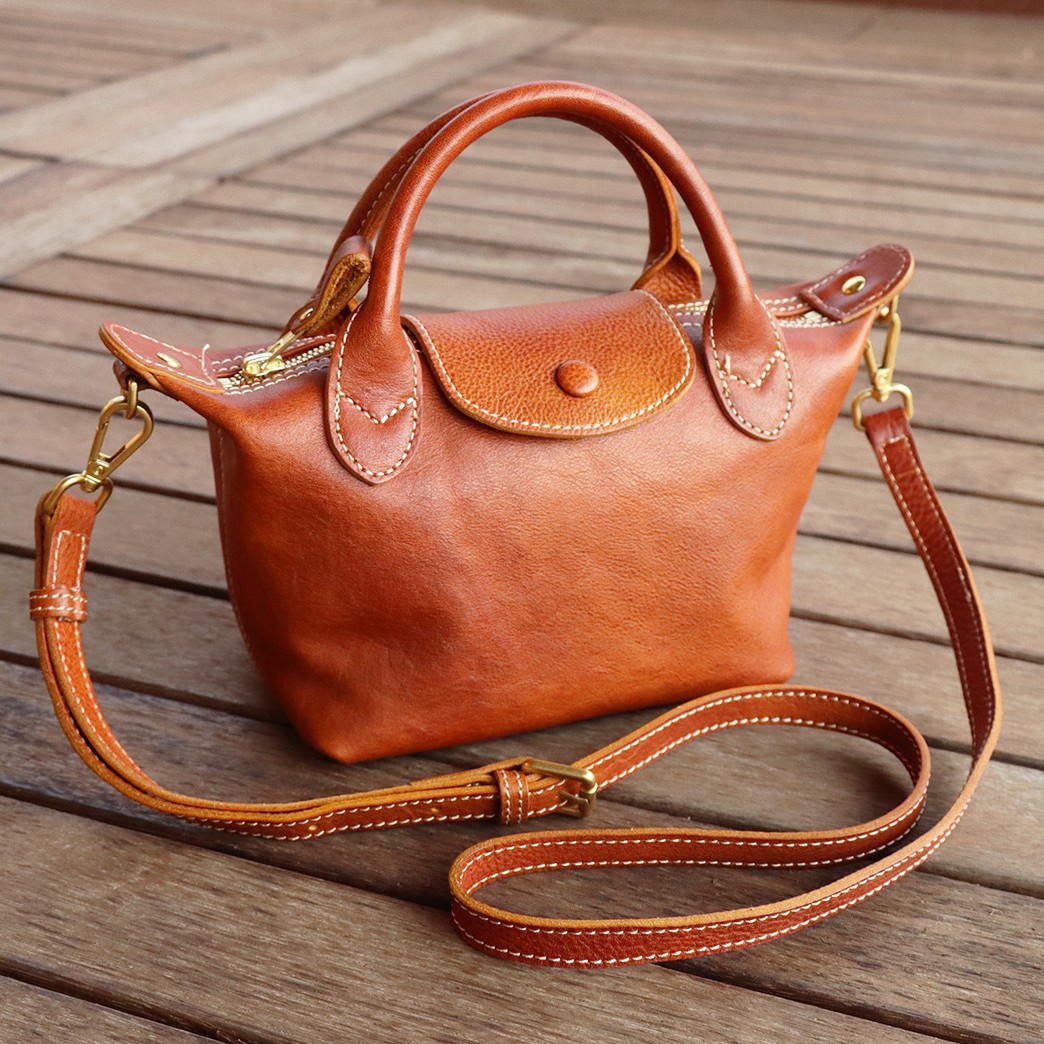 第一層植物タンニンなめし牛革スモールバッグレトロハイエンド軽量ワンショルダーファッションクロスボディレディースバッグ団子バッグ6008