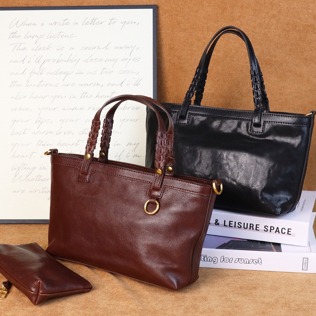 新款通勤百搭大容量托特包头层植鞣牛皮复古单肩手提女包2742