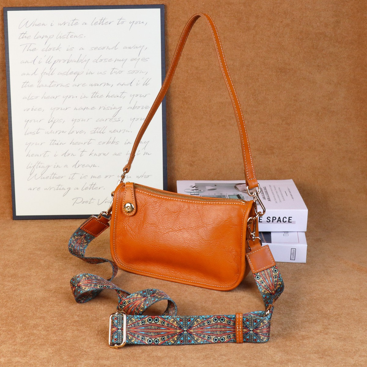 本革レディースバッグニッチハイエンドバッグポータブルショルダーバッグ斜めクロスボディバッグ第一層牛革レトロ脇の下バッグ6599