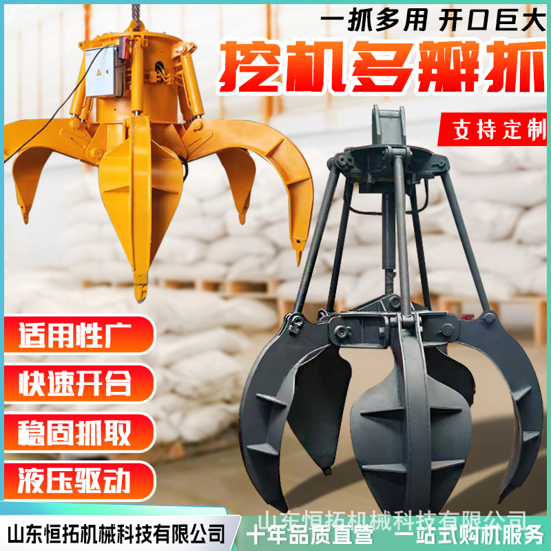 鋼材の積み下ろし、蓮鉄掴み機、掘削機アタッチメント、油圧式木材掴み機、多弁式スクラップ鋼掴み機