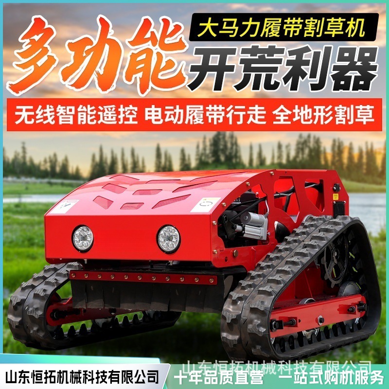 小型無限軌道リモコン芝刈り機、庭開墾用ガソリン除草機、高出力自走式インテリジェント草破砕機
