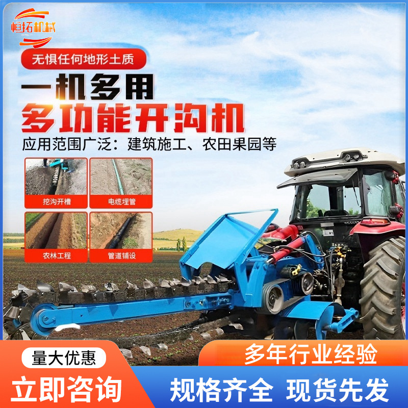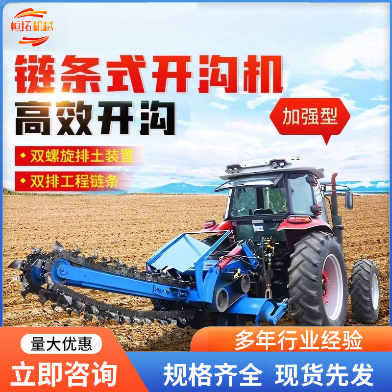 大型溝開け機農業用果樹園溝入れ灌漑工事ケーブル配管溝入れシート式チェーン溝開け機