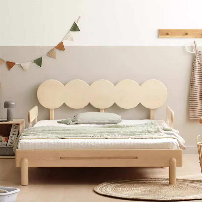 北米硬楓木実木児童ベッド桜木男の子女の子シンプルクリーム風白オーク魚尾寝室ベッド