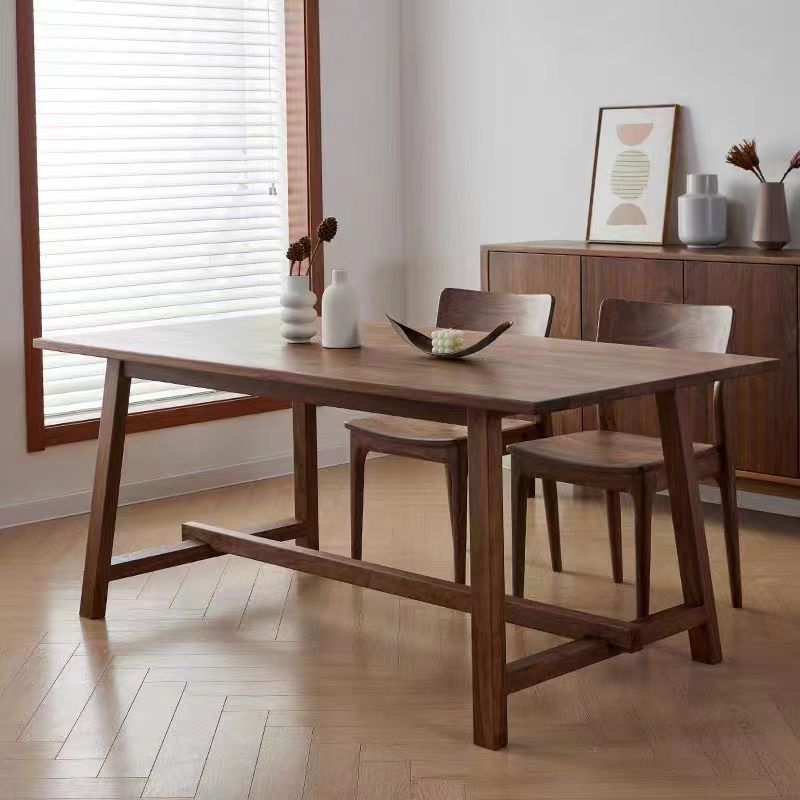 黒胡桃実木食卓北欧大板テーブル長方形テーブル白オークテーブル机日本式茶テーブル