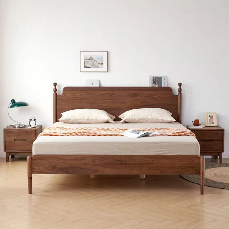 北欧黒胡桃木実木ツインベッド1.8メートル桜桃木ベッドレトロ寝室家具シンプルで贅沢なベッド