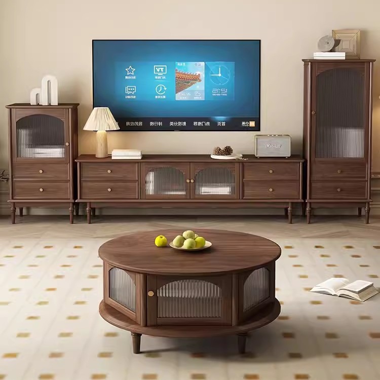 北米黒胡桃実木テレビキャビネット茶何组みアメリカレトロ桜木リビングテレビサイドキャビネット高低キャビネット
