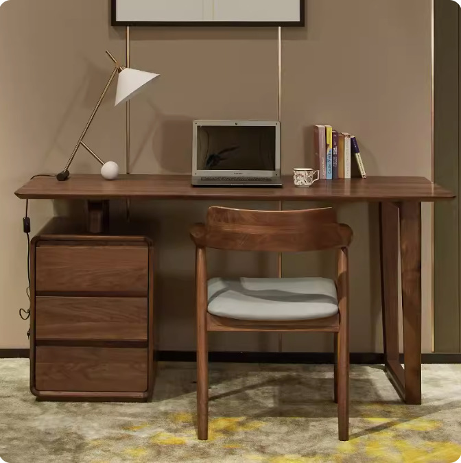 北米黒胡桃木机机全実木コンピュータデスク家庭用デスク書斎寝室原木ほぞ卯