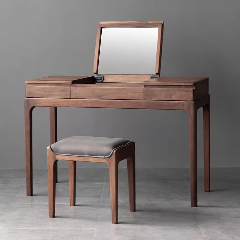 北米黒胡桃木全実木化粧台コンピュータデスク一体テーブル環境保護多機能寝室カバー化粧台